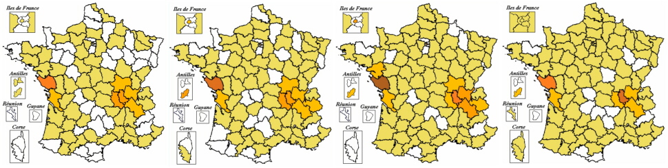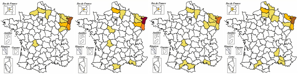 Ces cartes ont été obtenues sur le site http://195.6.231.241/scoring/Patronyme/index.asp