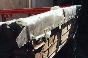 du coin. Je coule du goudron chaud, et ... vite je fixe la tôle avec