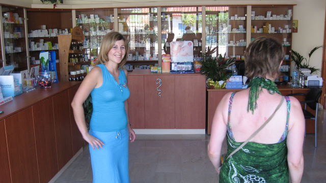 Maria dans sa pharmacie à Ammoudia